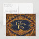 Ornate Blue Gold Scrollwork Happy Labor Day Holiday Postcard