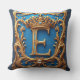 Ornate Blue Letter E Throw Pillow
