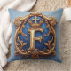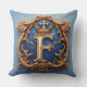 Ornate Blue Letter F Throw Pillow