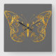 Square Wall Clock Ornate Decorative Butterfly Design Home Decor/Any Room Gold/Slate Gray Customizable/Unique/Trendy