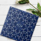 Elegant ornate decorative tile in Mediterranean style featuring a seamless pattern made of blue and white ornaments.