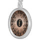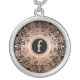 Beautifully ornate filigree look design in copper color with black. Black circle in the center for you to add an initial (currently reads "f"). Gorgeous custom monogram necklace to give as a personal gift or to order for yourself as a signature piece of jewelry.