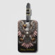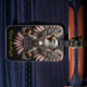 A close-up of an intricately crafted eagle sculpture, featuring metallic details and pink accents.