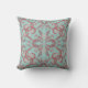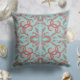 Light and refreshing, the Ornate Elegance in Mint Aqua pillow features a soft minty green backdrop with ornate pink flourishes. This design brightens any space, from chic modern interiors to cozy bohemian corners.