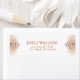 Elegant rose gold ornate lace geometric design, white background, customizable return label design.