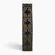 An ornate filigree in tones of ocre (deep dark yellow) over a purple background, creating and old world, antique look. A little baroque for your accessories or decor.
