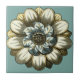 Ornate Floral Medallion on Light Blue Background Ceramic Tile