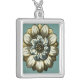 Ornate Floral Medallion on Light Blue Background Silver Plated Necklace