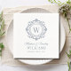 Ornate Floral Monogram Wedding Elegant Silver Napkins features your personalized monogrammed initials in elegant script typography surrounded by an ornamental floral frame and custom text overlay. Add a touch of style and sophistication to your wedding celebration or event with these high quality napkins. Perfect for weddings, engagement parties, bridal showers and anniversaries. Celebrate your special day with customized napkins with your initials for a stylish personalized touch. Created by Evco Studio www.zazzle.com/store/evcostudio