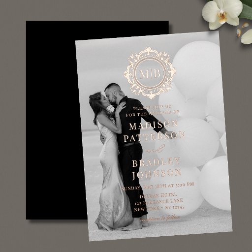 Ornate Floral Monogram Wedding Menu Foil Invitation