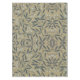 Ornate floral pattern with dark blue vines and leaves on a beige background. White circular flowers with gold accents add elegance and contrast.