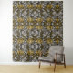 Ornate floral pattern with large gold flowers and cream leaves on a black background. The design is intricate, vintage-inspired, and elegant.