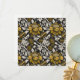 Ornate floral pattern with large gold flowers and cream leaves on a black background. The design is intricate, vintage-inspired, and elegant.
