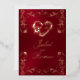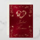 Ornate Frame & Heart - Red Foil Invitation featuring a ruby red background with an ornate frame, heart and bride & grooms first names in foil on the front. The details, on a cream background are on the back. Designed to coordinate with the "Ornate Frame & Hearts" Wedding Collection. To change details, click «Personalize». To move the text or change the text size, font, or color click «Click to customize further»