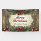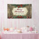 This banner masterfully frames your holiday message within an antique-gilded wooden scroll work frame. Surrounding the elegant frame is a lush wreath of deep-green holly leaves and ruby-red berries, cinched with striking red satin bows at the top and bottom for perfect symmetry. The "Merry Christmas" message shines in a bold, calligraphic red and green. Easily personalize the lower line with your family name or custom text. Six scattered deep-crimson ornaments add a final touch of vintage glamour, making this the ideal, unforgettable focal point for your décor.