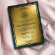 Unveil the beauty of your upcoming Islamic Mehndi ceremony with this captivating invitation. A rich emerald green border frames the design, creating a bold and luxurious feel. Within the border, a mesmerizing gold gradient takes center stage, radiating elegance. Delicate touches of ornate gold elements dance along the edges, adding a touch of traditional flair.