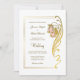 Plain white envelopes are included with paper invitations and will come to fit the invitation size you select. If you don’t need the envelopes, you may choose to not receive them by selecting the dropdown below "Envelopes" and choosing "None." If you’d like to have a design on your envelopes, you can browse all of these available envelopes to find the design that complements your Ornate Gold Frame Script Wedding Invitation.