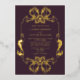 Ornate Gold Purple Floral Line Monogram Wedding Foil Invitation
