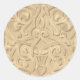 Add elegance to any surface with this beautifully designed round sticker. Featuring an intricate scrollwork pattern in soft golden-beige tones, the design resembles embossed vintage wallpaper or hand-carved ornamentation. Its swirling, symmetrical flourishes give it a sophisticated, timeless feel, while the subtle shading creates a textured, three-dimensional look.