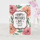 This greeting card features a soft watercolor-style illustration that centers on a white, ornate label bordered in dark brown, surrounded by abundant flowers that lean in close like a warm embrace ❤️. The main text sits inside the label, with “HAPPY MOTHER’S DAY” placed prominently at the top and “to Someone Special” arranged below in a smaller line, all in a warm brown tone. Around the panel, full blooms in rose pink and peachy orange create a gentle, romantic garden feel, with petals shaded in subtle gradients that look tender and velvety. Deep green leaves weave between the blossoms, adding contrast and giving the bouquet a grounded, natural setting. Small pink starburst accents appear near the wording, adding a light celebratory sparkle without overpowering the calm design 🌼. A few light brown teardrop shapes are scattered in the background like soft confetti, keeping the space airy and inviting. Near the lower area, a tiny pink heart sits among the floral details and accents.