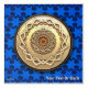 An ornate metal Passover matzah tray with a 3D fractal Magen David (Star of David). The plate ais superimposed on a blue-toned tablecloth with multiple Magens David. Hebrew text on the plate reads, "מצה" (matzah) and "פסח שמח" (pesach sameach - Happy Passover). You may customize by adding your own additional text.