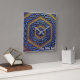 A copper, blue and gold 3D fractal image of a Magen David (Star of David) resembling an intricately-textured metal panel. Customize by adding your own text.
