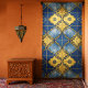 This curtain set features a royal blue and gold Moroccan tile pattern with intricate scrollwork and gilded accents. The symmetrical motif draws inspiration from Moorish architecture, offering an ornate yet structured look. The deep blue backdrop and rich gold details create a striking, decorative style. Suitable for eclectic living rooms, boho bedrooms, upscale lounges, or distinctive home offices. Appeals to those who enjoy Moroccan or Mediterranean design, maximalist interiors, and bold, detailed patterns.