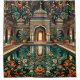 Immerse yourself in the elegance of this stunning artwork featuring an ornate architectural structure, with indoor pool, inside an opulent a palace. The design showcases intricate patterns and decorative columns, with a central arched doorway leading into the building. Large potted plants flank the entrance, adding to the grandeur. The foreground features a reflective body of water that mirrors the architecture and flora, creating a captivating and serene scene. The rich color palette of deep greens, blues, reds, and earth tones enhances the detailed and vibrant appearance, making this artwork perfect for adding a touch of sophistication to any space.