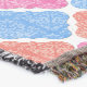 A quality printed throw has its advantages. This is a much finer weave throw than its loopier cousins, and though lighter, it is worth the investment for custom room accessorizing. The back is much prettier than the typical brown, and the fringe on the long sides very vivid, the selvage nicely done. Before photographing, I washed the throw in cold water, delicate, with a thicker woven throw the same size. On tumble dry low, this throw was dry in half the time as the other. This is a very practical quality if you use throws for furniture covers or to wrap up in frequently. The sleekness of the fabric makes it a great layer for accenting or protecting without the feeling of sitting on too much stuff. Perfect for napping or when you feel a light chill coming on. The color printing is beautiful and on this fabric, matched the design and color of my Photoshop image. This is an advantage for blending room fabrics and colors. The fringe on the short sides prints the colors from the design image and therefore varies from the side fringe. I streaked a white fractal line through the plaid pattern to give the illusion of weaving. This printed as crisp as an illusory thread, and put some white in the short side fringe, showing another advantage of print vs loomed- for artistic purposes, line lines, detail, and color integrity can be planned and preserved. My loomed throws have color limitations and more of a needlepoint texture. Print throws reproduce an exact image. The throw felt a little stiff straight out of the package, but this went away in the first delicate wash. Of course I searched the wash water for ink or bleeding and there was none.