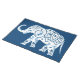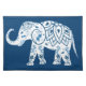 Stunning ethnic art cloth placemats with decorative henna tattoo style elephant on midnight blue background.