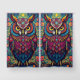 A stunning display of opulence and detail, this ornate owl is decorated in rich reds, golds, and deep blues. Every feather is a canvas of intricate, symmetrical patterns, giving it a look of handcrafted, regal jewelry. This majestic design is for those who love luxury, elegance, and richly detailed artwork.