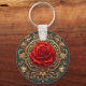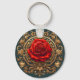 Ornate Red Rose With Gold Baroque Frame Keychain
