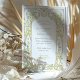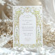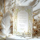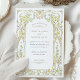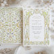 This luxurious wedding invitation features a refined botanical border adorned with intertwining golden vines and lush watercolor florals. With a symmetrical layout and exquisite scrollwork, the design draws inspiration from classical European illumination and antique palace décor. Pink daisies, bluebells, and dainty wildflowers flourish along the frame, highlighted by soft gold accents and elegant leafy curves.