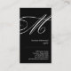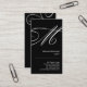 The letter "M" rendered in an ornate script bleeds off this black business card making a stylish, versatile look for a hairdresser, image consultant, life coach, or stylist among many others. Don't like the black background? Choose the "Customize It" button option and change the background color as desired. Available in alternate monograms.