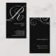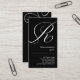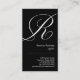 The letter "R" rendered in an ornate script bleeds off this black business card making a stylish, versatile look for a hairdresser, image consultant, life coach, or stylist among many others. Don't like the black background? Choose the "Customize It" button option and change the background color as desired. Available in alternate monograms.