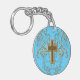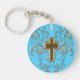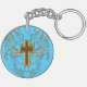 Ornate Scrolls & Cross Keychain, Light Blue & Gold Keychain