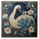 Ornate Swan, Blue and White, Bird & Flowers Ceramic Tile