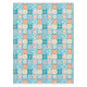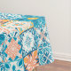 Ornate tiles in blue and orange tablecloth