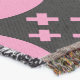 A quality printed throw has its advantages. This is a much finer weave throw than its loopier cousins, and though lighter, it is worth the investment for custom room accessorizing. The back is much prettier than the typical brown, and the fringe on the long sides very vivid, the selvage nicely done. Before photographing, I washed the throw in cold water, delicate, with a thicker woven throw the same size. On tumble dry low, this throw was dry in half the time as the other. This is a very practical quality if you use throws for furniture covers or to wrap up in frequently. The sleekness of the fabric makes it a great layer for accenting or protecting without the feeling of sitting on too much stuff. Perfect for napping or when you feel a light chill coming on. The color printing is beautiful and on this fabric, matched the design and color of my Photoshop image. This is an advantage for blending room fabrics and colors. The fringe on the short sides prints the colors from the design image and therefore varies from the side fringe. I streaked a white fractal line through the plaid pattern to give the illusion of weaving. This printed as crisp as an illusory thread, and put some white in the short side fringe, showing another advantage of print vs loomed- for artistic purposes, line lines, detail, and color integrity can be planned and preserved. My loomed throws have color limitations and more of a needlepoint texture. Print throws reproduce an exact image. The throw felt a little stiff straight out of the package, but this went away in the first delicate wash. Of course I searched the wash water for ink or bleeding and there was none.