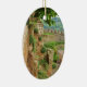Oval ceramic ornament with an image of a view of the rolling hills of Tuscany beyond the battlement of the ancient hilltop town of Orvieto, Italy. See the entire Italy Ornament collection in the HOME section.