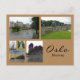 Postcard featuring collage of photos taken in Oslo (including Østbanehallen, Rådhuset, Vigeland Sculpture Park, and Stortinget).