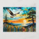 Osprey in flight over wildflowers at Sunset Postcard