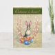 Send this card to loved ones to celebrate the return of Spring. It features a black an white bunny, colorfully decorated eggs, pussy willow and crocuses.