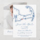 Set the tone for your Osterville wedding with this modern navy blue Save the Date featuring an elegant map of Cape Cod on the front and a customizable photo on the back. Perfect for weddings at Oyster Harbors Club, The Wianno Club, or Armstrong-Kelley Park, this design pairs style with convenience, offering free envelope addressing. Announce your special day in effortless coastal charm! Artwork by Coastal Map Designs.