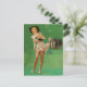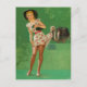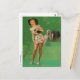 Funny PinUp card showing a beautiful Pin-Up Girl got picked her skirt by an ostich, painted by Art Frahm (1907-1981)