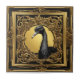 A striking image featuring a black ostrich set against a luxurious gold and black ornamental frame, evoking a sense of opulence and exoticism. The contrast between the sleek, black feathers of the ostrich and the intricate, elegant details of the frame creates a visually captivating composition.