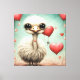 A adorable little ostrich and hearts.
