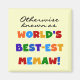 Best Memaw T-shirts, hoodies, mugs, cards, stickers, gammie keepsakes, magnets, and other gammie apparel and gifts with text that reads "Otherwise known as World's Best-est Memaw!". If you call your grandma "memaw" these are for her!