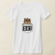 The material is a great quality that is hard to find with most tee shirts. Fabric was not see-through or thin at all, but was also very soft and comfortable. The shirt description states that it runs a little small, so I sized up one size for a perfect fit! I would definitely buy this type of tee shirt again because I love the fit and high quality fabric that I cannot find anywhere else. The printing was perfect and just as pictured. Loved the cute quote and really enjoy the tee in both the quality and design. I love quirky typography designs and funny quotes and I am extremely pleased with the overall quality and value I get at Zazzle!
