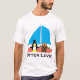 Penguin groom and Otter bride getting married in front of their sailboat. A blank version of our wedding party t-shirt.